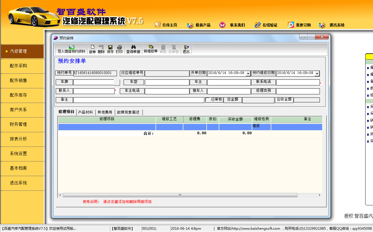 智百盛汽车维修管理软件汽修管理主要功能如下: